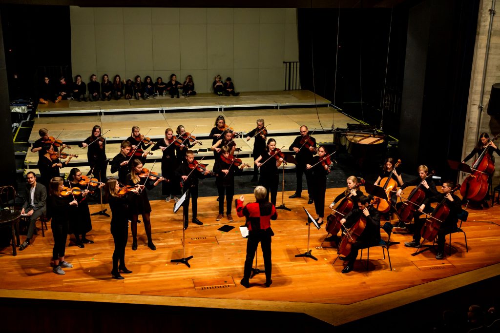 Das Konzertorchester studiert anspruchsvolle Streicherliteratur aus allen Epochen ein. Die SchülerInnen können sich in allen Lagen frei bewegen. Sie beherrschen viele Stricharten, können sehr gut Noten lesen und haben einen freien, modulationsfähigen Ton. In Studientagen, die in den Schulferien stattfinden, wird in Klassen- und Technikstunden und im Einzelunterricht individuell die Technik vertieft. Kammermusik und Musiktheorie runden die Ausbildung ab. Alle SchülerInnen haben die Möglichkeit, Solokonzerte mit Orchesterbegleitung zu spielen. Außerordentliche Projekte, wie Arrangierseminare, Experimentieren mit elektronischen oder elektronisch verfremdeten Streichinstrumenten oder Workshops mit interdisziplinären musikalischen Ausdrucksformen, geben spannende neue Möglichkeiten der musikalischen Verwirklichung.